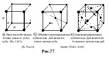 Кубическая система. Параллелепипед Браве – куб. Различают 3 типа решеток Браве кубической системы: простая кубическая (рис.77-а), объемноцентрированная кубическая (рис.77-б), гранецентрированная кубическая (рис.77-в). В решетках кубической системы а = b = c, = = =90°.