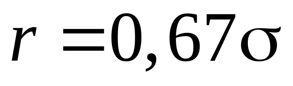 Вероятным отклонением r называют величину, равную половине длины участка, симметрично расположенного относительно математического ожидания, вероятность попадания на который равна 0,5. Вероятное отклонение находят из условия: