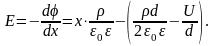 Напряженность поля при наличии свободных зарядов не постоянна. Она прямо пропорциональна расстоянию от начала отсчета по оси x.