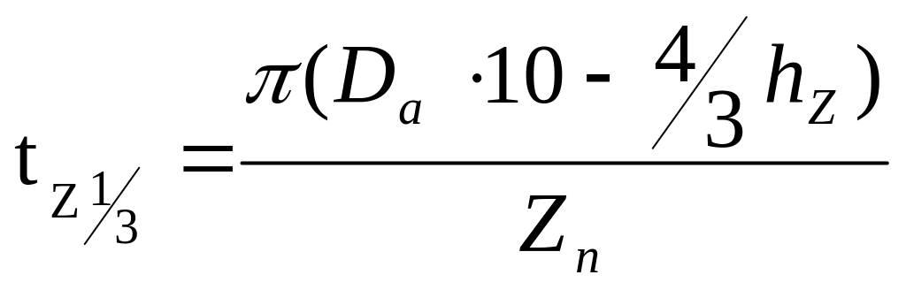 – ширина зубца на высоте 1/3 от его