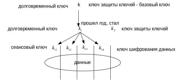2) ключи защиты ключей используются для обеспечения безопасности ключей более низкого уровня иерархии.