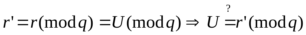 1) проверить 0<r’<q и 0<s<q, если хоть одна из проверок не совпадает, то ЦП не действительна.