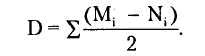 Предположим, что совокупная рабочая сила состоит из 100 мужчин и 100 женщин. Среди женщин 75 человек - секретари-машинистки, а 25 - водители грузовиков; а среди мужчин 25 - секретарей-машинисток и 75 - водителей. Коэффициент Дункана будет равен 50. Математический коэффициент Дункана исчисляется посредством суммирования по всем профессиям абсолютных величин процентных различий двух групп, занятых в каждой профессии, и делением этой суммы пополам. Если Мi - это процентный состав одной группы в профессии i, a Ni - процентный состав другой группы в профессии i, тогда коэффициент D определяется формулой:
