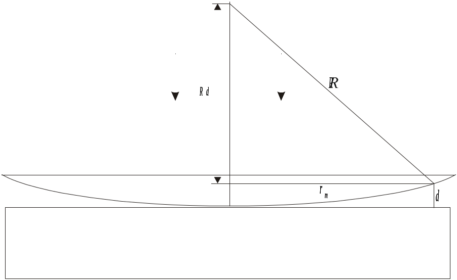 Классическим примером полос равной толщины являются кольца Ньютона. Они соблюдаются при отражении света от соприкасающихся друг с другом плоскопараллельной стеклянной пластины и плоско-выпуклой линзы с большим радиусом кривизны. Роль тонкой пленки, от поверхностей которой отражаются когерентные волны, играет воздушный зазор между пластинкой и линзой. При нормальном падении света полосы равной толщины имеют вид концентрических окружностей, при наклонном падении- эллипсов. Найдем радиусы колец при нормальном падении света.