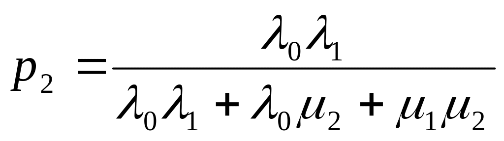 Состояния системы различаются числом отказавших элементов (0, 1 или 2) и обозначаются «0», «1» и «2» соответственно. Диаграмма состояний и переходов между ними представлена на рис. 7.2.