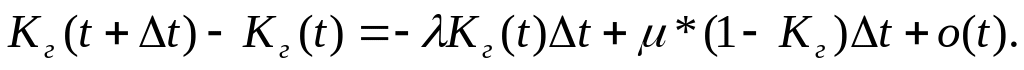 Если в момент времени t объект был работоспособен, и за время Δt не произошло отказа ИЛИ если в момент времени t объект был неработоспособен, но за время Δt закончилось восстановление, ТО в момент времени t+Δt объект будет работоспособен. Выражая вероятности этих событий, получим: