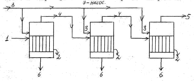 Параллельное питание каждого корпуса (рис.101) применяется для кристаллизующихся растворов, которые трудно с кристаллами провести через все корпуса.
