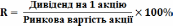 Інвесторів цікавить також рівень дивідендів на одиницю вкладених коштів. Для цього використовують показник відношення дивіденду до ринкової вартості акції (рендит акції). Цей показник використовується для порівняння з іншими підприємствами та розраховується за формулою: