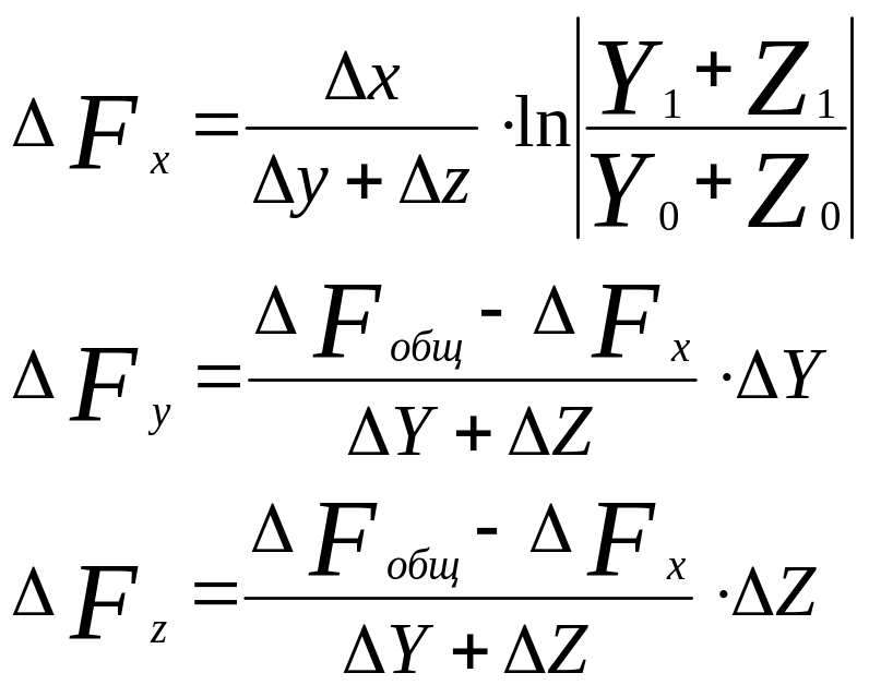 ΔF=ΔF(lgIx/lgIf)+ΔF(lgIy/lgIf)+ΔF(lgIz/lgIf)