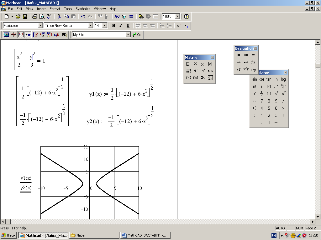 Построение в MathCAD 7