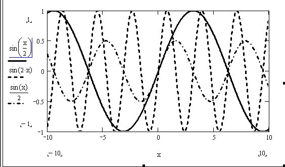 Для построения нескольких графиков в одной графической области достаточно отложить по оси абсцисс аргумент х, а по оси ординат через запятую перечислить все заданные функции.