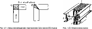 Шихтованная конструкция магнитопроводов силовых трансформаторов показана на рис. 1.6, б, когда стержни и ярма собирают слоями в переплет. Обычно слой содержит 2–3 листа. В настоящее время магнитопроводм силовых трансформаторов изготовляют из холоднокатаной электротехнической стали, у которой магнитные свойства вдоль направления прокатки листов лучше, чем поперек. Поэтому при шихтованной конструкции в местах поворота листов на 90° появляются «зоны несовпадения» направления прокатки с направлением магнитного потока, На этих участках наблюдаются увеличение магнитного сопротивления и рост магнитных потерь. С целью ослабления этого явления применяют для шихтовки пластины (полосы) со скошенными краями. В этом случае вместо прямого стыка (рис. 1.7, а) получают косой стык (рис. 1.7, б), у которого «зона несовпадения» гораздо меньше.
