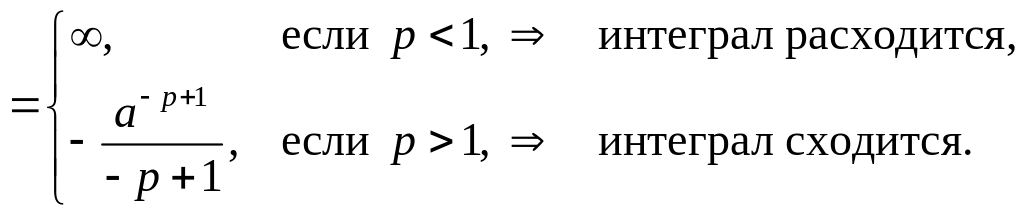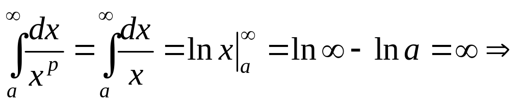 При дальнейшем изучении курса высшей математики часто будут использоваться несобственные интегралы вида . Поэтому проведем исследование его сходимости в зависимости от величины параметра p.