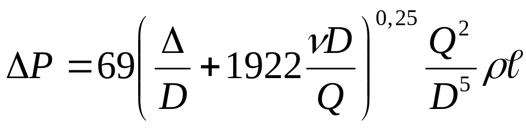 В зависимости от значения Re падение давления в газопроводах определяется по следующим формулам: