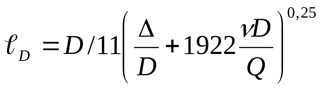 где Q – расход газа в [м3/ч] при температуре 0оС и давлении 0,10132 МПа; D – внутренний диаметр газопровода в [см]; - коэффициент кинематической вязкости газа [м2/с] при температуре 0оС и давлении 0,10132 МПа.