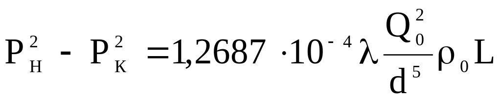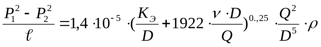 Гидравлический расчет газопроводов высокого и среднего давления по всей области турбулентного режима движения газа (Re>4000) можно производить по формуле