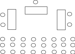 Если преимущественно монологические формы общения (лекция, доклад) допускают традиционное расположение: оратор лицом к аудитории, размещенной рядами, то диалогические формы общения при таком расположении непродуктивны. Вот некоторые наиболее эффективные варианты диалогических форм общения.