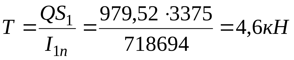 Величины Q, S, I1n принимаются для сечения на опоре.