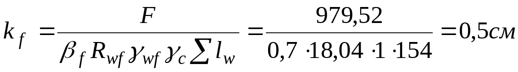 5. Толщина сварных швов, прикрепляющих опорное ребро к стенке балки, вычисляется по формуле: