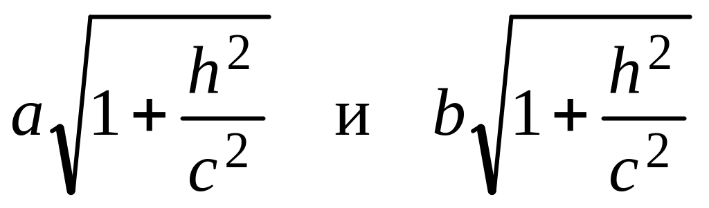 В сечении гиперболоида плоскостью 0xz также получаем гиперболу с действительной полуосью а и мнимой полуосью с. Пересекая гиперболу плоскостью 0ху в сечении получаем эллипс: