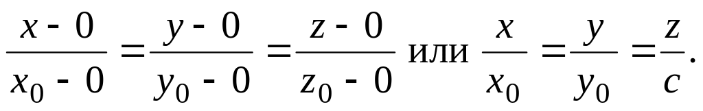 Выведем уравнение этой конической поверхности. Пусть М(х, у, z) – произвольная точка поверхности, М0(х0, у0, z0) – точка пересечения эллипса с образующей ОМ. Координаты точки М0 удовлетворяют системе (3.23), поэтому