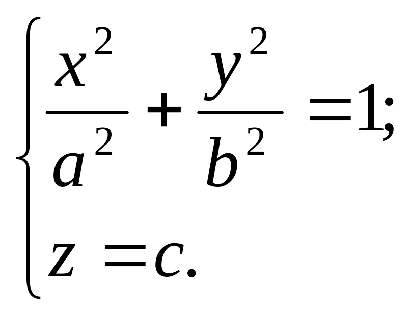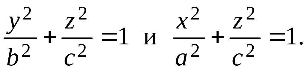 Система (3.27) показывает, что плоскость 0ху пересекает эллипсоид по эллипсу с полуосями а, b. Аналогично для плоскостей 0yz, 0xz соответственно получаем в сечении эллипсы: