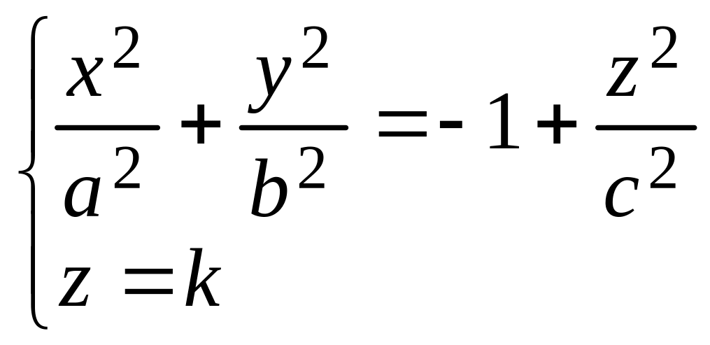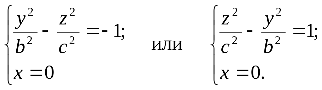 Ось 0z является общей осью симметрии для гипербол (3.33) и (3.34) и называется осью двуполостного гиперболоида. Уравнения: