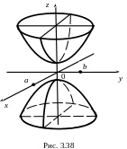 – гиперболу с действительной полуосью b и мнимой полуосью с (в плоскости 0уz) (рис. 3.37). Аналогично,