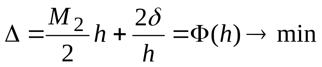 Таким образом, методическая погрешность при уменьшении шага интерполирования уменьшается, а погрешность округления обратно пропорциональна шагу и при уменьшении шага может как угодно сильно исказить получаемый результат, т.е. численное дифференцирование неустойчиво. Исходя из этого шаг следует выбирать таким, чтобы суммарная погрешность была минимальна