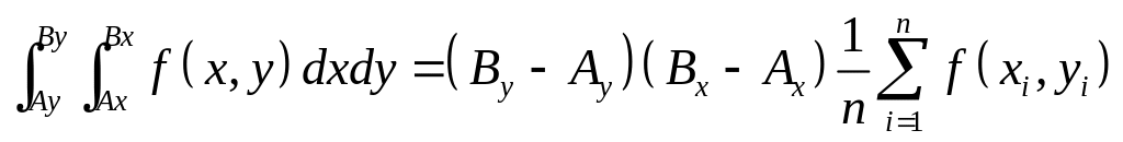 Интеграл же может быть вычислен как математическое ожидание некоторой случайной величины ξ, которая определяется независимыми реализациями ηi случайной величины η с равномерным законом распределения. Двукратные интегралы вычисляются следующим образом:
