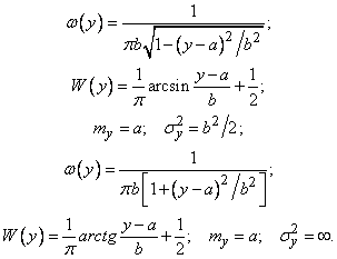 можно сформировать случайные числа, распределенные по закону арксинуса и закону Коши соответственно: