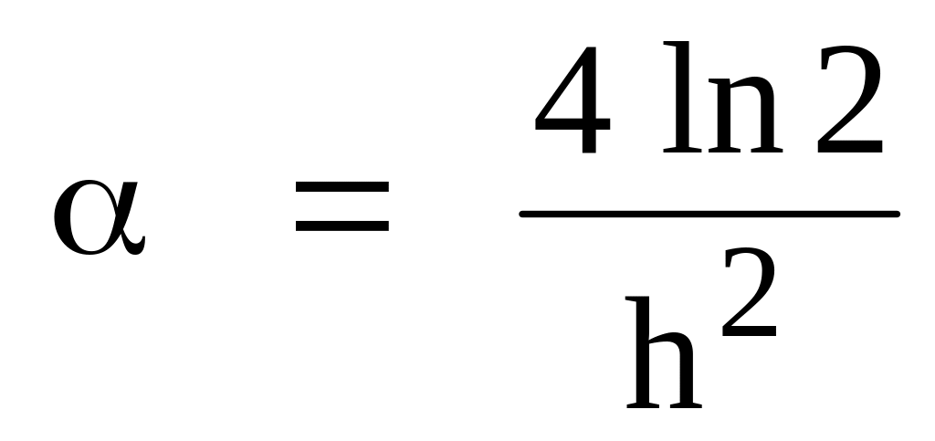 Кроме того, необходимо, выбрав одиночный пик, измерить его ширину d на уровне, соответствующем половине высоты пика, и, после этого, вычислить параметр a по формуле: