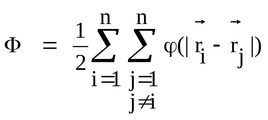 Пусть имеем n атомов, и пусть задана функция (r) – потенциал межатомного взаимодействия, r – расстояние между атомами. Энергия всей системы атомов будет равна:
