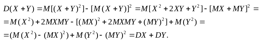 Дисперсия суммы двух независимых случайных величин равна сумме дисперсий этих величин: