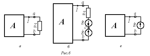 Для доказательства теоремы выделим из схемы произвольную ветвь с сопротивлением , по которой протекает ток , а всю остальную часть схемы условно обозначим некоторым активным двухполюсником А (см. рис. 6,а).