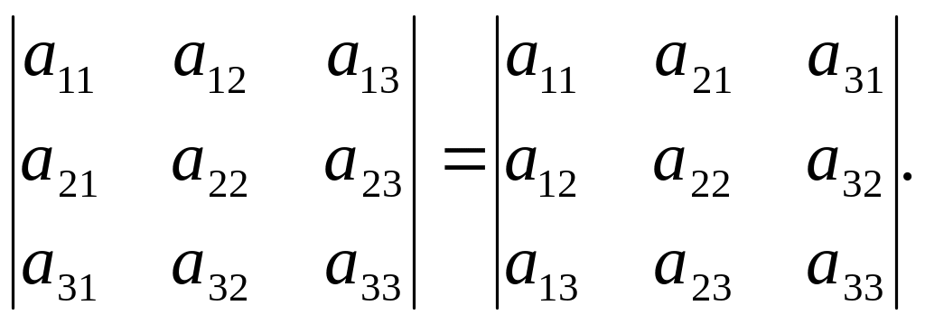 Свойство 1. Определитель не изменяется при транспонировании, т.е.