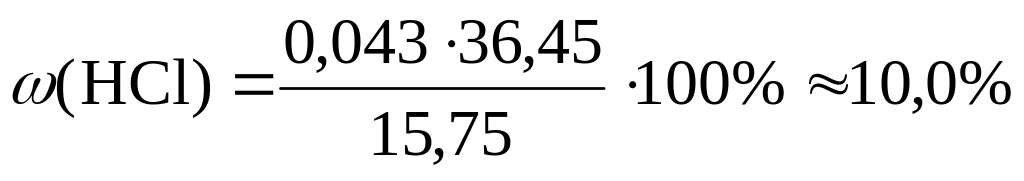В 15 мл (учитывая плотность, в 15,75 г) раствора содержится 0,043 моль HCl.