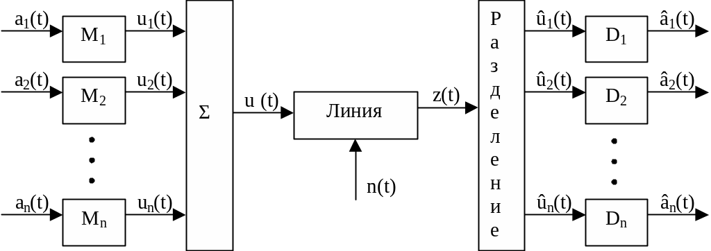 Рис. 2.3. Структурная схема многоканальной системы связи