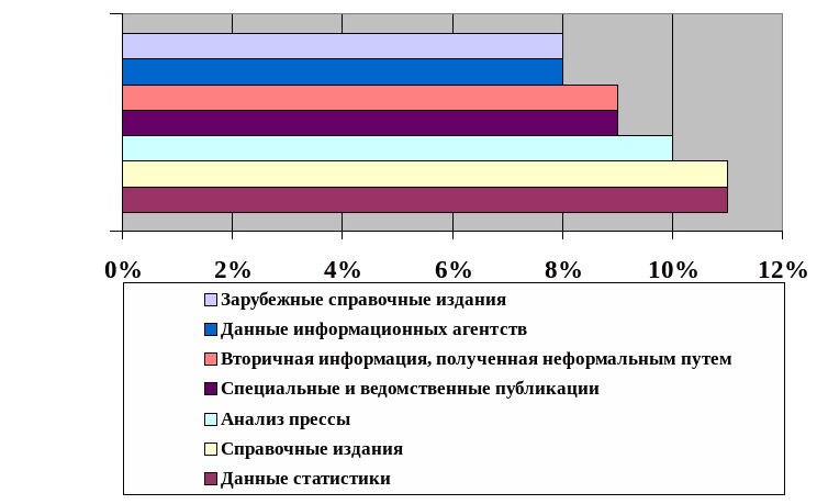 Источники вторичной маркетинговой информации наиболее часто используемые в российской практике маркетинговых исследований показаны на рис. 6.