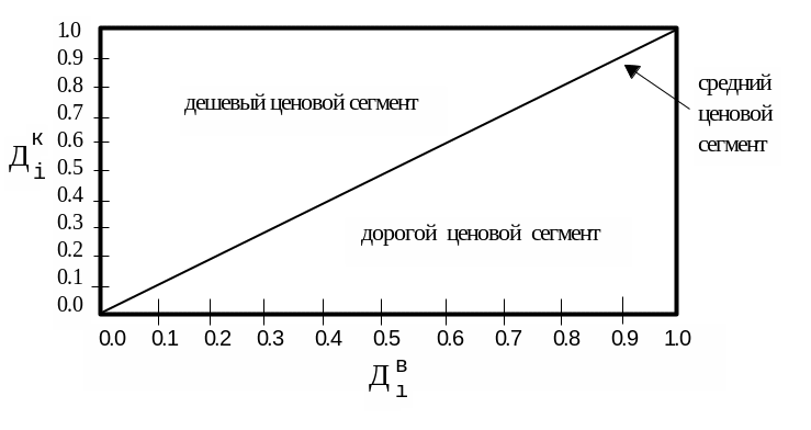 если ____ = 1 ,то организация работает в среднем ценовом сегменте,