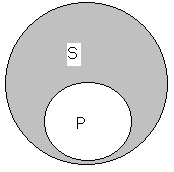 подчинено первому, т. е. в объём понятия «животные» входит как часть понятие «позвоночные». Поэтому символ такого частно-утвердительного суждения будет таков, как он изображён на рис. 14. Он показывает, что мы из S (животные) выделяем часть, которая и есть Р (позвоночные). Та часть S, о которой идёт речь, на рисунке заштрихована.