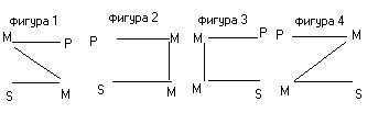 Фигуры и модусы силлогизма. В фигуре 1 средний термин является подлежащим в большей посылке, сказуемым — в меньшей. В фигуре 2 он является сказуемым в большей посылке, сказуемым же и в меньшей посылке. В фигуре 3 он является подлежащим и в большей и в меньшей посылке, и, наконец, в фигуре 4 он является сказуемым в большей посылке и подлежащим—в меньшей.