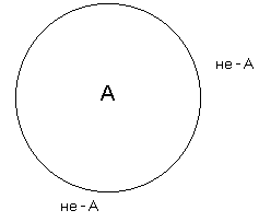Если мы имеем какое-нибудь понятие А и другое понятие В, относительно которого известно только то, что оно не есть А, то такие понятия называются противоречащими (contradictoriae). Например, понятия «белый» и «небелый» суть понятия противоречащие. Итак, два термина, из которых один получен путём прибавления отрицательной частицы «не» к другому, относятся между собой, как противоречащие. Символически отношение между противоречащими понятиями выражается следующим образом (рис. 8). Кругом символизируется какое-нибудь одно понятие А, и вне его ставится другое понятие В, которое есть не-А, причём это понятие В может быть поставлено где угодно, лишь бы не внутри круга, не в его объёме; это второе понятие по своим свойствам называется понятием отрицательным или нёопредёленным (notio negativa seu indefinita).