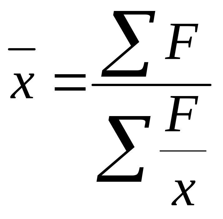 средняя гармоническая взвешенная Применяется: Если известны общие (суммарные) F и индивидуальные X значения признака, а частоты явно не даны. |