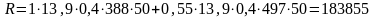 R=0,5∙0,55∙13,9∙0.4∙195∙45,3+0,5∙0,55∙13,9∙0,4∙392∙38,5+0,5∙0,55∙13,9∙0,4∙203∙21,6+0,5∙0,55∙13,9∙0,4∙153∙10,2= 45703 руб,
