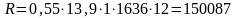 R=0,5∙0,55∙13,9∙1∙1710∙6,8+0,5∙0,55∙13,9∙1∙1880∙16,9+0,5∙0,55∙13,9∙1∙1971∙11,4+0,5∙0,55∙13,9∙1∙2032∙10,2= 329064 руб,