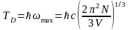 Максимальную частоту ωт нормальных колебаний решетки можно найти, приравняв полное число колебаний числу степеней свободы, равному 3n (n — число атомов в единице объема кристалла; расчет производится для единицы объема):