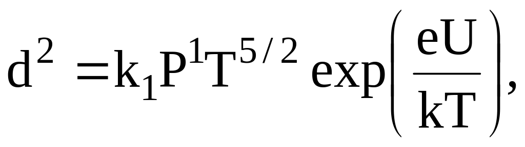где Р – давление смеси, Т – температура нагрева, Ui – потенциал ионизации i-й составляющей снеси, К – постоянная Больцмана, К1 – коэффициент пропорциональности.