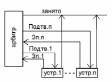 Арбитр анализирует индивидуальные линии запросов Зп.1..Зп.n и посылает сигнал Подтв. i с учетом приписанных устройствам приоритетов. |