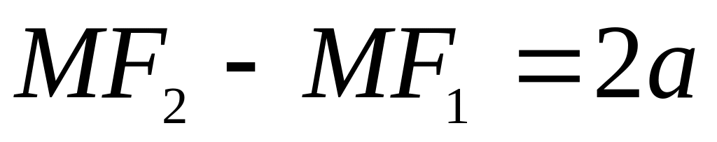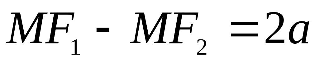 Гиперболой называется геометрическое место точек плоскости, разность расстояний которых от двух данных точек той же плоскости, называемых фокусами гиперболы, постоянна.
